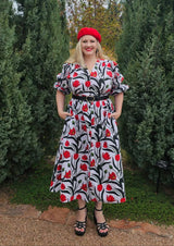 - Featuring hand painted red Poppies and blue foliage on a black background
